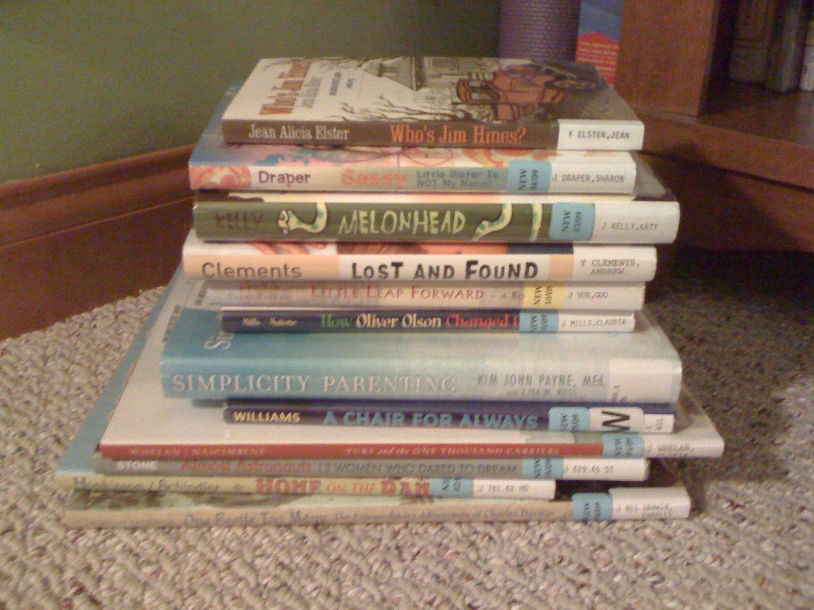 Additional books will be added if I am thinking I'm getting close to finishing any of these. I also need to finish Raw Milk Revolution and Simplicity Parenting, as they are due Friday and can't be renewed, but I've already started on these.